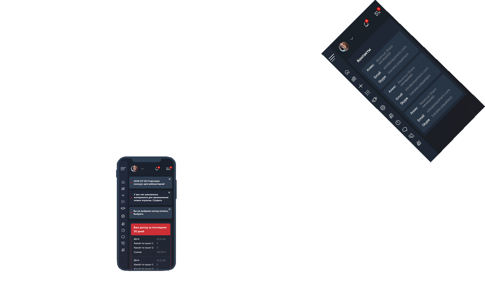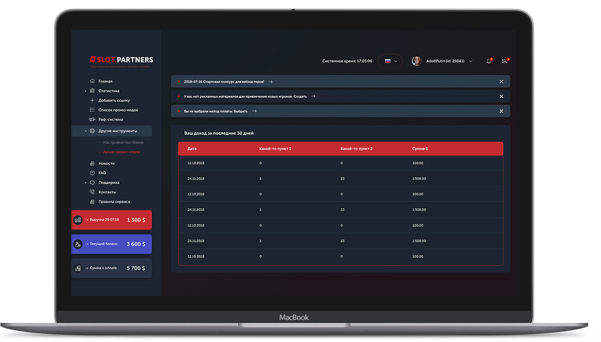 Личный кабинет партнерской программы онлайн казино SLOT.PARTNERS.