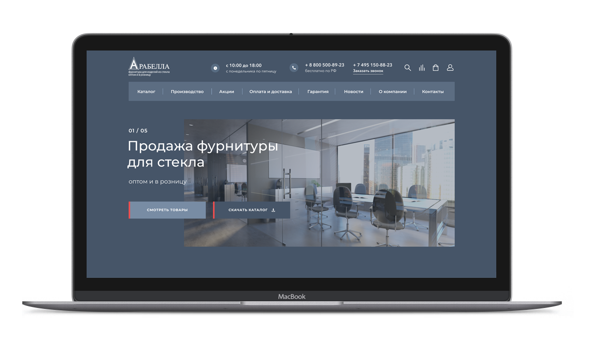Дизайн сайта для компании, которая продаёт фурнитуру для стекла