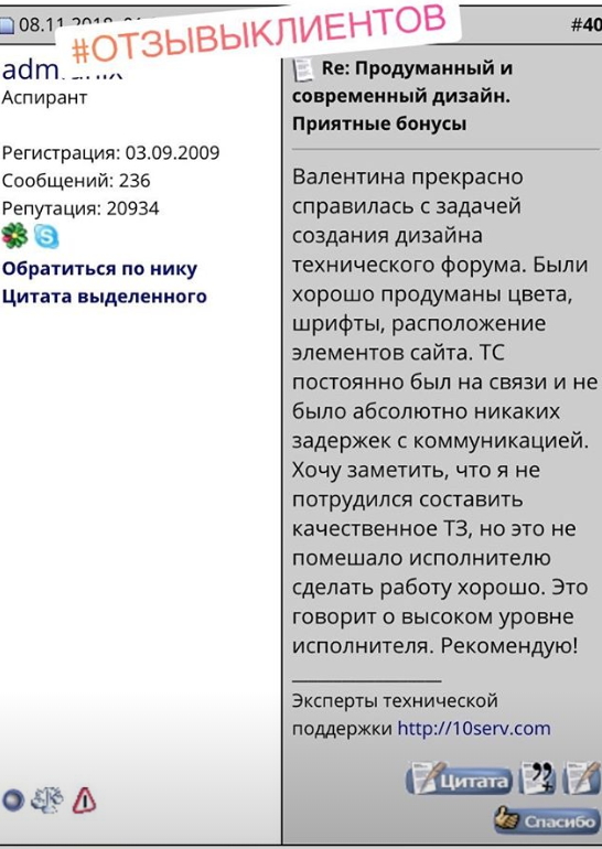 Валентина прекрасно справилась с задачей создания дизайна технического форума. Были хорошо продуманы цвета, шрифты, расположение элементов сайта. Постоянно была на связи, рекомендую!